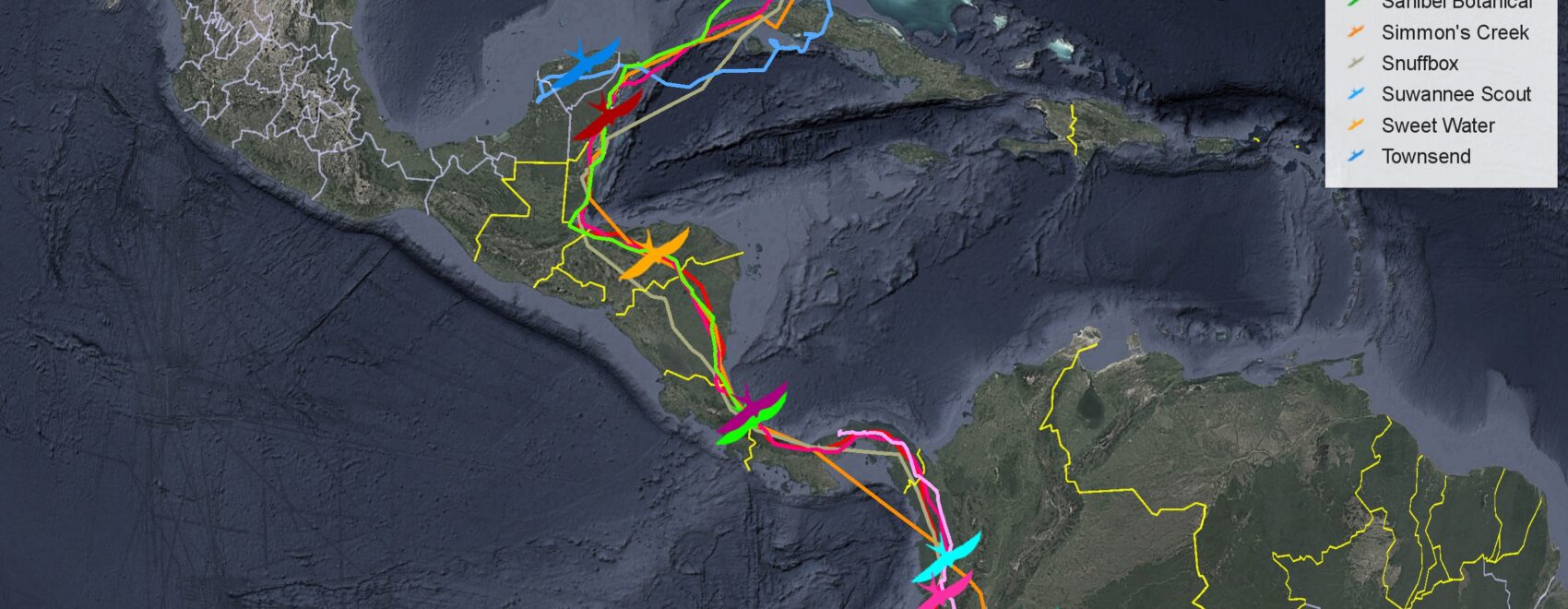 Peter’s Creek: tagged in 2021, from Georgetown County, South Carolina has made it to Limón, Costa Rica about 10 days after Cypress.